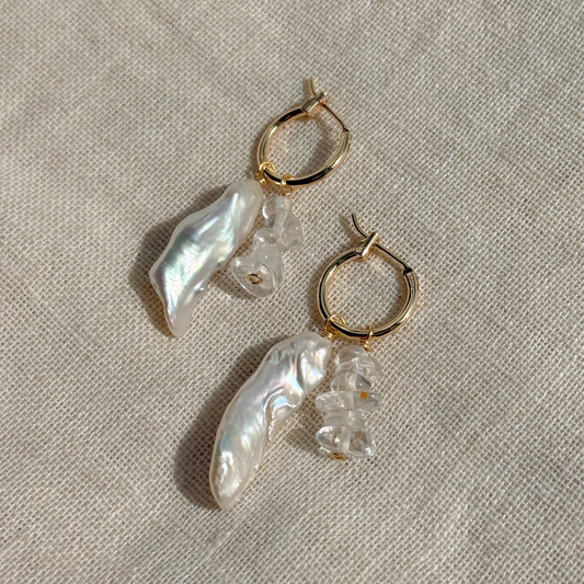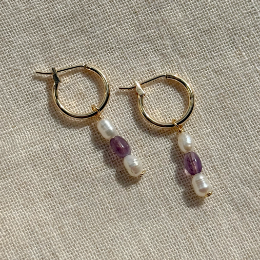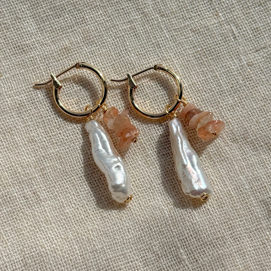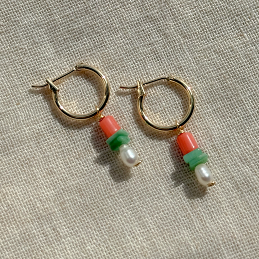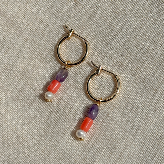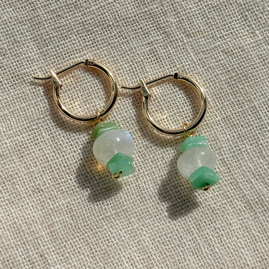 Sold outGEMSTONE DANGLE HOOP EARRINGS